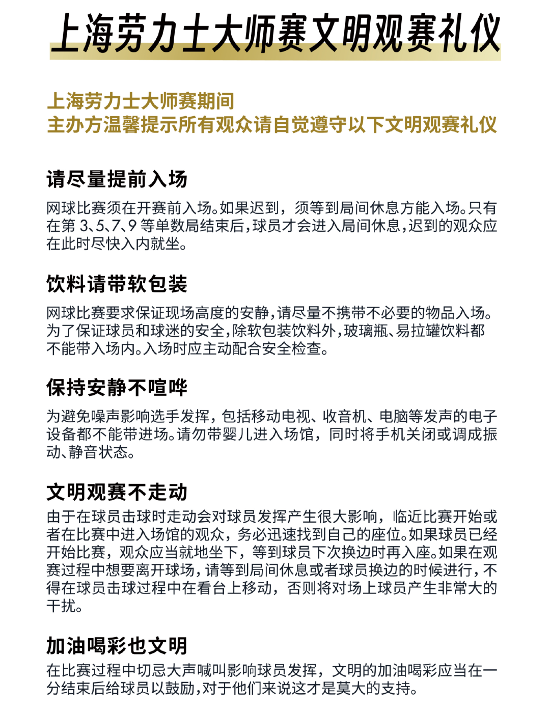 记者防御到,9月24日,“上海劳力士大师赛”官微曾发布不雅赛礼节,其中明文强调保执中意不喧哗、好意思丽不雅赛不往还、加油喝彩也好意思丽。
